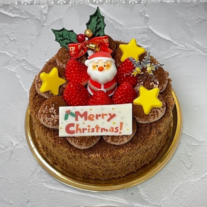 定番のチョコレートデコレーションに色とりどりのフルーツを飾りました。