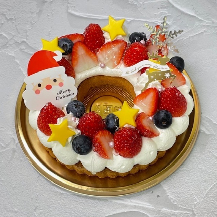 クッキー生地のアーモンドタルトが華やかにテーブルを飾るリース型タルト。