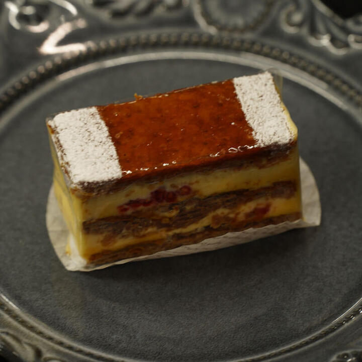 トロワショコラ口どけ滑らかな3種類のチョコレートムースを三層に仕上げ、フィアンティーヌとビスキ...