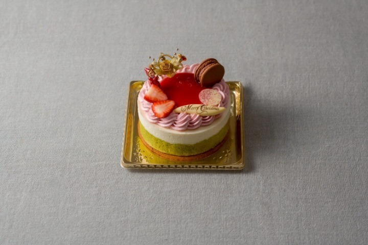 ホワイトチョコムースとベリーのムース、ピスタチオのスポンジのクリスマスケーキ